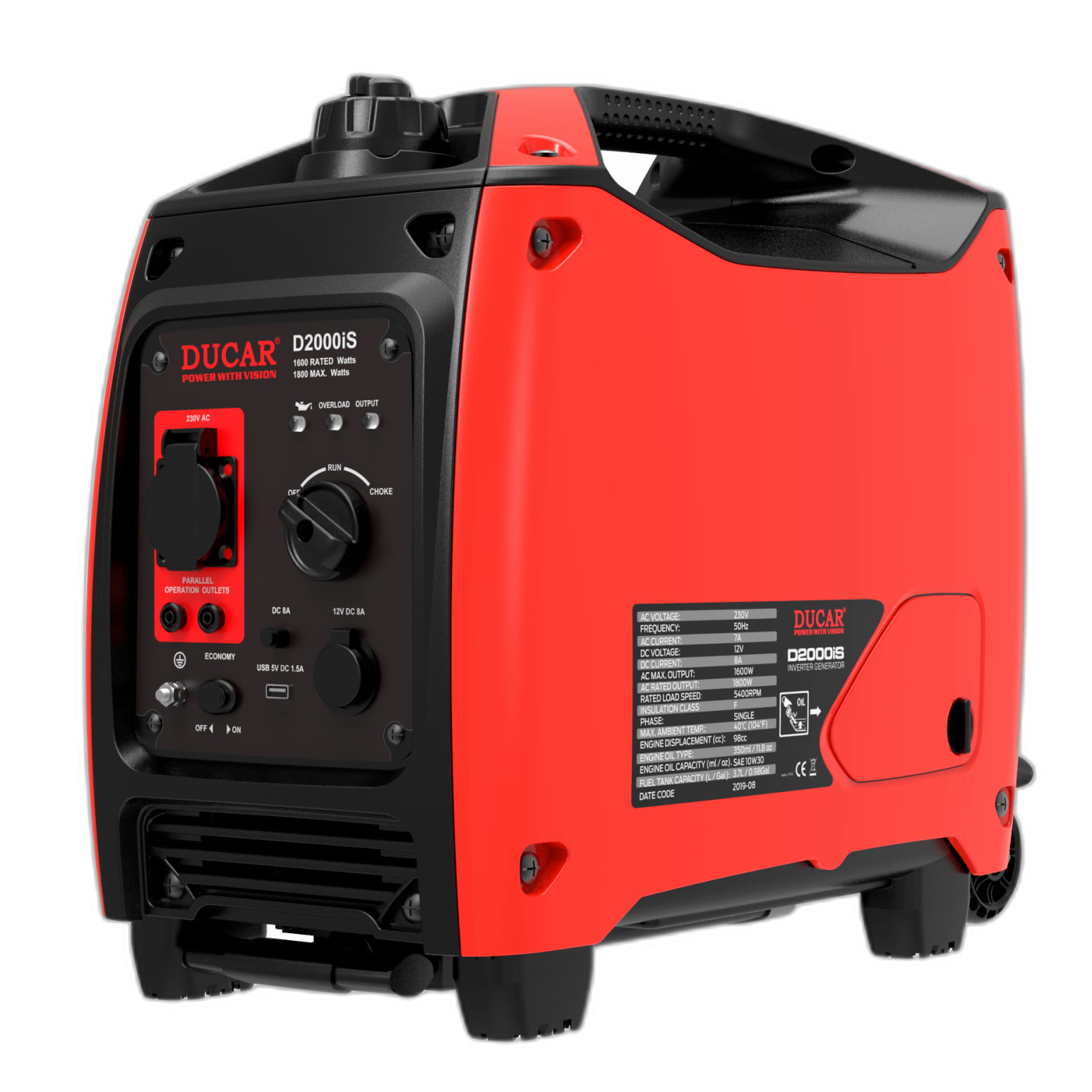 Ducar D2000iS aggregaatti renkailla ja vetokahvalla